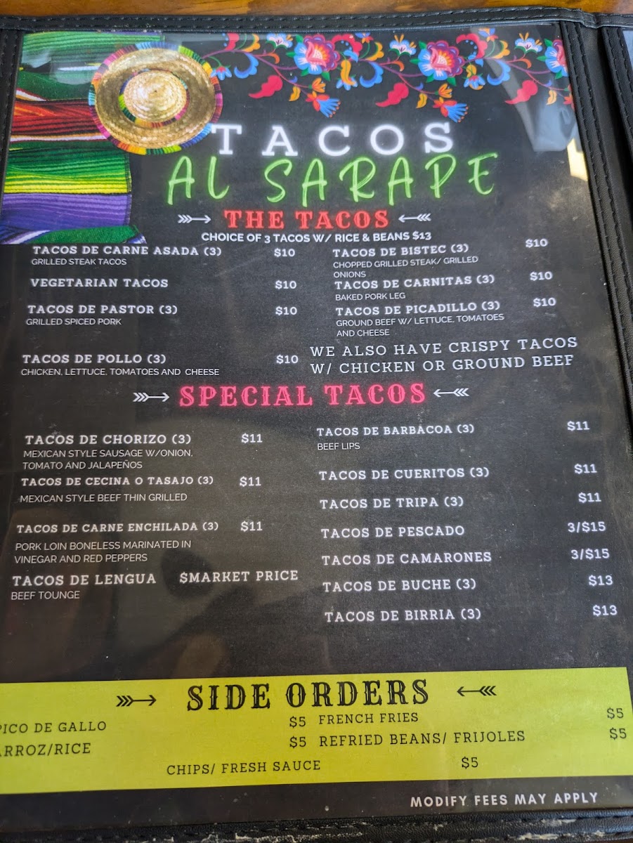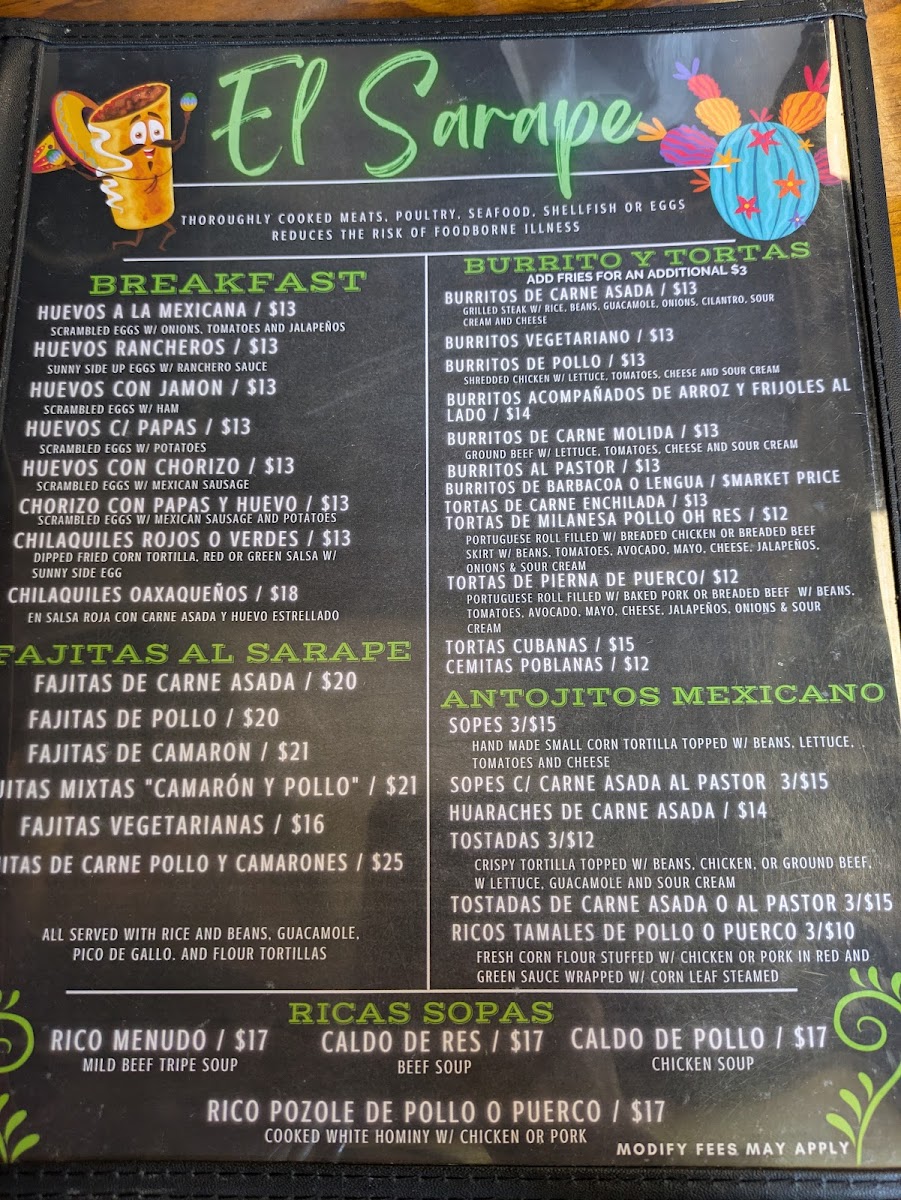The variety of options ensures that every visit can be a new experience. From juicy steaks and grilled chicken to vegetarian and seafood options, there’s a dish for every taste. The drink menu is just as exciting, with refreshing margaritas and homemade aguas frescas to complement your meal. Whether you're here for a casual dinner with friends or a special family gathering, the El Sarape Menu is guaranteed to offer something delicious for every palate.